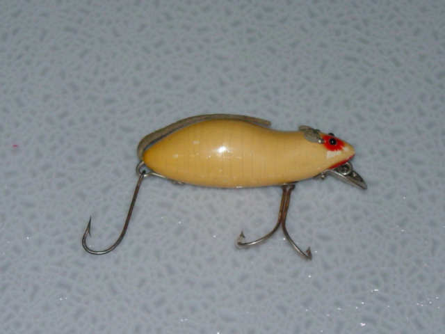 Heddon 4000 Meadow Mouse, White Finish, Red Eye Shadow, Black Glass Eyes, Cup